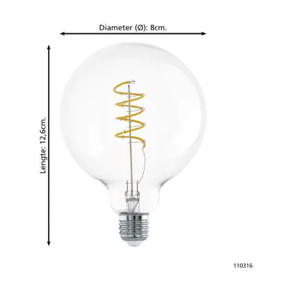 Eglo LED E27 Globe Klar Fadenlampe 7.3W 806lm - 827 Extra Warmweiß | Ersatz Für 60W