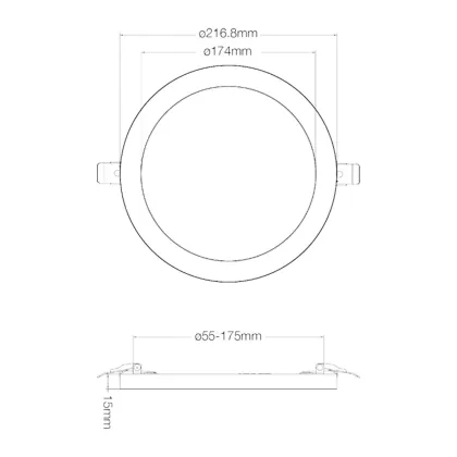 | Herstellername | Budgetlight LED Downlight Ecowhite 18W 1530LM 3000/4000/6000K dimmable frame Φ217*H15 cutout 55-175 | |