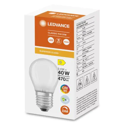 Ledvance Superior Classic LED E27 Kugel Matt 3.4W 470lm - 940 | Dimmbar - Höchste Farbwiedergabe