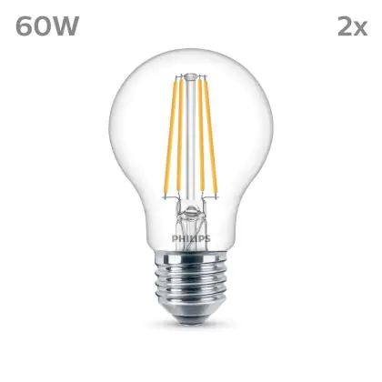 Mehrfachpackung 2x Philips Glühbirne LED E27 Birne Fadenlampe Klar 7W 850lm - 840