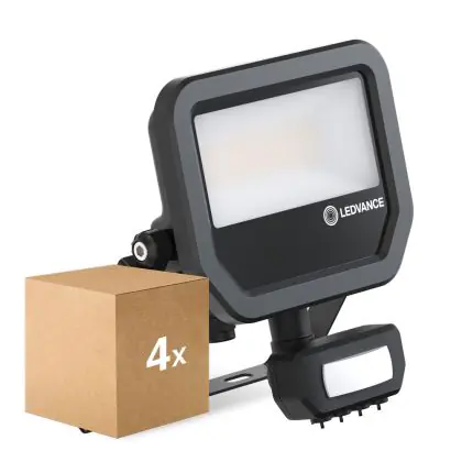 Mehrfachpackung 4x Ledvance Led-Scheinwerfer Aluminium Schwarz 17W 2400lm 100D - 840 | IP65 - Bewegungs- und Lichtsensor - Symmetrisch