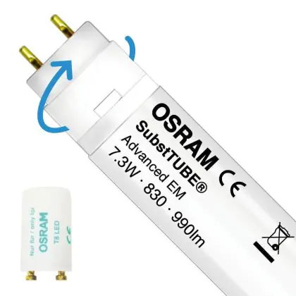 Ist eine LED-Röhre drehbar, können Sie die Richtung, in die das Licht abgestrahlt wird, selber bestimmen. Das ist besonders energieeffizient, da das Licht nicht unnötigerweise in 360 Grad ausgesendet wird, wie es zum Beispiel bei einer Leuchtstoffröhre der Fall ist.