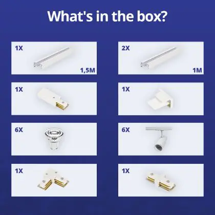 | Nom du fabricant | Complete L shaped 1-Phase Track Set White incl. 6x Spot fixture + GU10 2700K 3W Dim – 1.5 x 2 meters | |