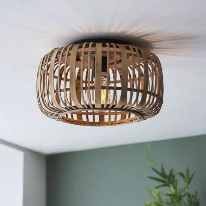 Brilliant Boisrow Plafonnier Métal Bambou Brun | 320mm - Convient pour 1x E27