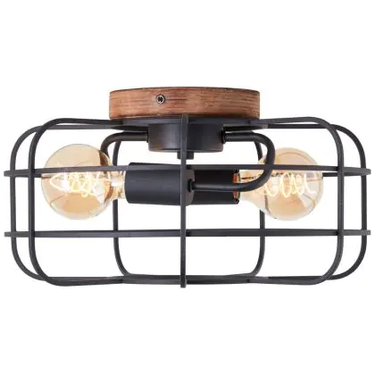 Brilliant Gwen Plafonnier Métal Bois Noir | 400mm - Convient pour 2x E27