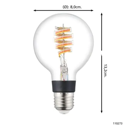 Cette ampoule Eglo Connect.Z Smart LED Globe E27 Filament Claire 4.9W 400lm - 830 Blanc Chaud + RGB | Dimmable - Remplacement 40W est l’alternative idéale pour la remplacement de votre ampoule classique de 40 W. La technologie LED intégrée vous offrira de nombreux avantages. Les ampoules à incandescence traditionnelles ont une durée de vie limitée. Cette alternative LED vous permettra de profiter d’un éclairage durable et fiable.