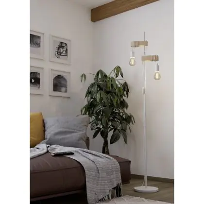 Eglo Lampadaires Salon Townshend Échantillon Blanc Bois | IP20 - Convient pour 2x E27