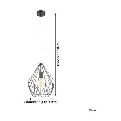 Eglo Suspension Luminaire Carlton Échantillon Noir | IP20 - Convient pour 1x E27