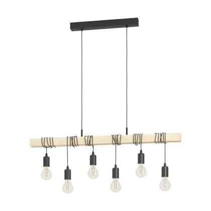 Eglo Suspension Luminaire Townshend Échantillon Bois Noir Brun | IP20 - Convient pour 6x E27