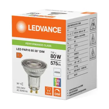 Description Ledvance LED PAR16 GU10 Réflecteur 7W 575lm 36D - 940 | Meilleur Rendu De Couleur - Dimmable - Remplacement 80W