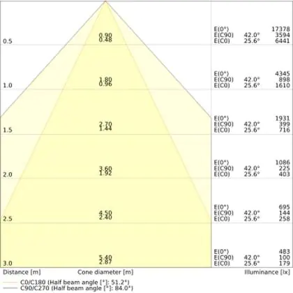 ![]() Le code couleur se compose de l'indice de rendu des couleurs (IRC) et de la température de couleur (Kelvin). Le premier chiffre indique le rendu des couleurs (1 = très mauvais rendu des couleurs, 9 = meilleure authenticité des couleurs). Le deuxième et troisième chiffre indiquent la température de la couleur. Exemple : Le code couleur "830" indique que la lampe a un bon rendu des couleurs (8) et une couleur de lumière blanche chaude (30 = 3000K). |