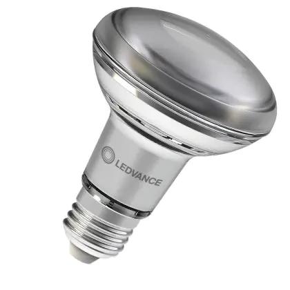 La lampe LED Ledvance Superior Spot LED E27 R80 4.9W 345lm 36D - 927- | Meilleur rendu de couleur - Dimmable - Remplacement 60W avec culot E27 (Ampoule à vis standard) est le remplacement idéal des lampes à incandescence et halogènes classiques. En raison de la faible consommation d'énergie, vous économisez considérablement sur vos coûts d'énergie. Les lampes à LED Ledvance n’utilisent qu’une petite partie de la puissance (4.9 W) que les lampes à incandescence et halogènes classiques (60 W). Les lampes à LED ont une excellente classe énergétique G, ce qui signifie qu'elles sont très écologiques et peuvent être recyclées après utilisation. En raison de leur durée de vie considérable de 25000 heures, vous n’aurez pas à les changer de si tôt.