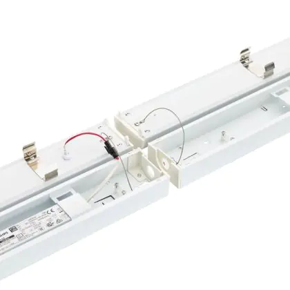 La réglette LED, Philips Réglette LED CoreLine Blanc 57W 8000lm - 830-840 CCT | 150cm - Dimmable, Dali - Remplacement 2x80W est conçue pour remplacer les réglettes TL-D traditionnelles et permettant d’économiser jusqu’à 50% d’énergie. Très souvent utilisé pour l’éclairage d’entrepôts, d’usines, de parking et d’autres grands espaces extérieurs. Très simple d’installation, cette réglette de peut se fixer au plafond et au mur et projette 3000K - 4000K CCT, comme couleur de lumière. La Philips Réglette LED CoreLine Blanc 57W 8000lm - 830-840 CCT | 150cm - Dimmable, Dali - Remplacement 2x80W dispose d’un indice de protection IP20 – Quasi-résistant à la poussière à l’eau et la poussière et d’une résistance aux chocs IK04.