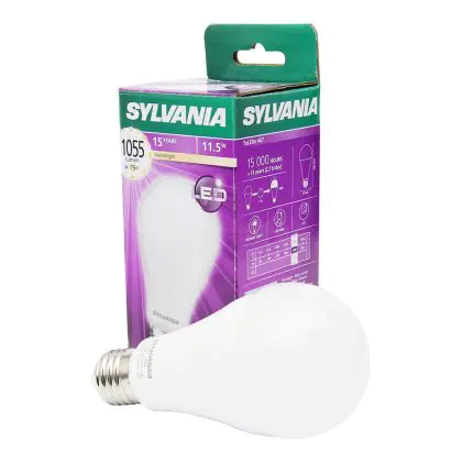 Cette ampoule Sylvania ToLEDo E27 Poire Dépolie 11.5W 1055lm - 827 | Remplacement 75W avec son efficacité lumineuse de lumen par watt vous permettra de profiter d’un éclairage de qualité. Avec sa durée de vie de 15000 heures, vous n’aurez pas à vous soucier de son remplacement avant quelques années.